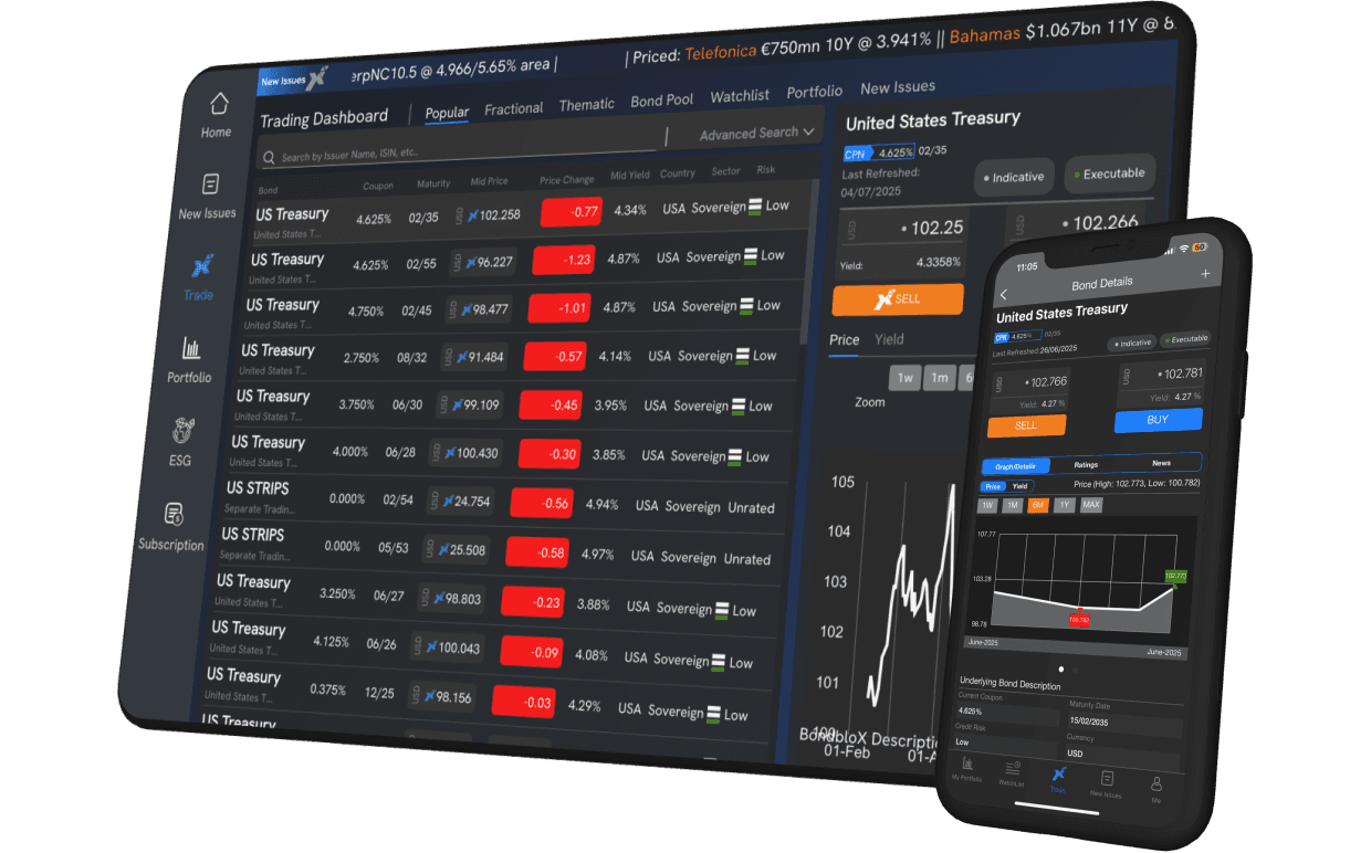Whether you're in Singapore, Dubai, Zurich or Mumbai, BondbloX gives you institutional-grade access to the US bond market—right from your phone.